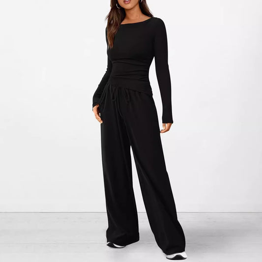 2024 Amazon Autumn Explosions Casual suit Asymmetric Long Sleeve T-shirt Wide Leg Pants Casual Sportswear
