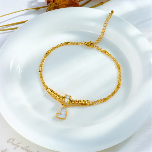 Fashion niche design simple high-end retro double-layer stacked Pearl Love Diamond five-pointed star pendant anklet