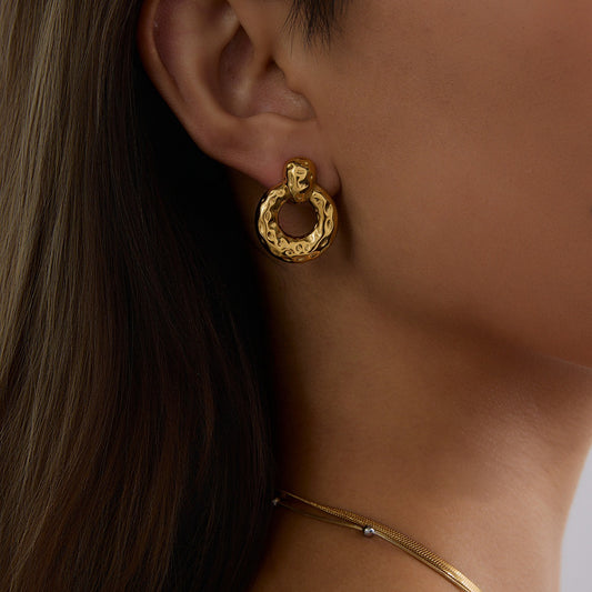 18K gold hollow round with texture design unique personality earrings18K gold hollow round with texture design unique personality earrings