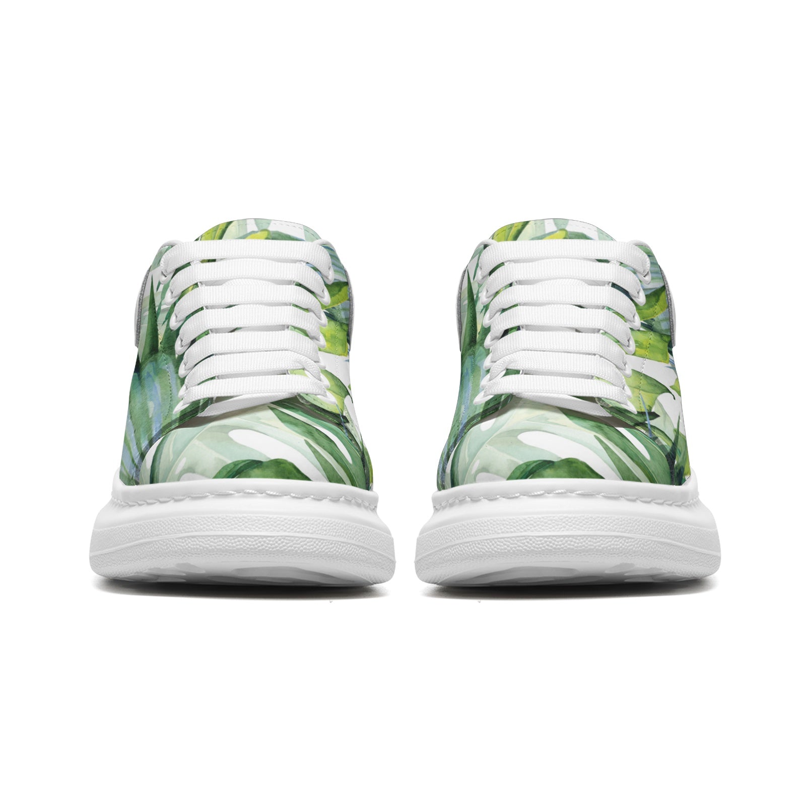Unisex Non Slip Lace Up Faux Leather Sneakers GREEN