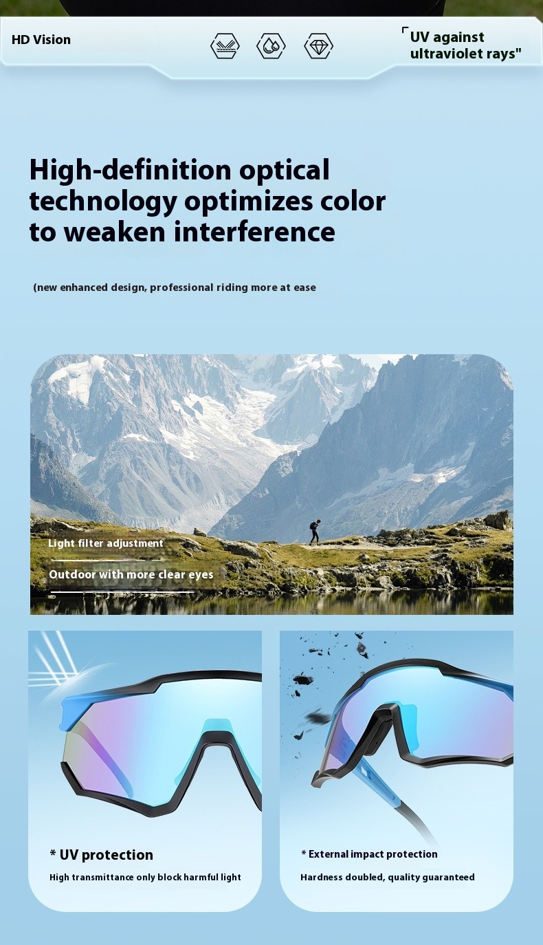 Óculos de proteção coloridos e reflexivos para caminhadas e montanhismo, óculos de ciclismo integrados