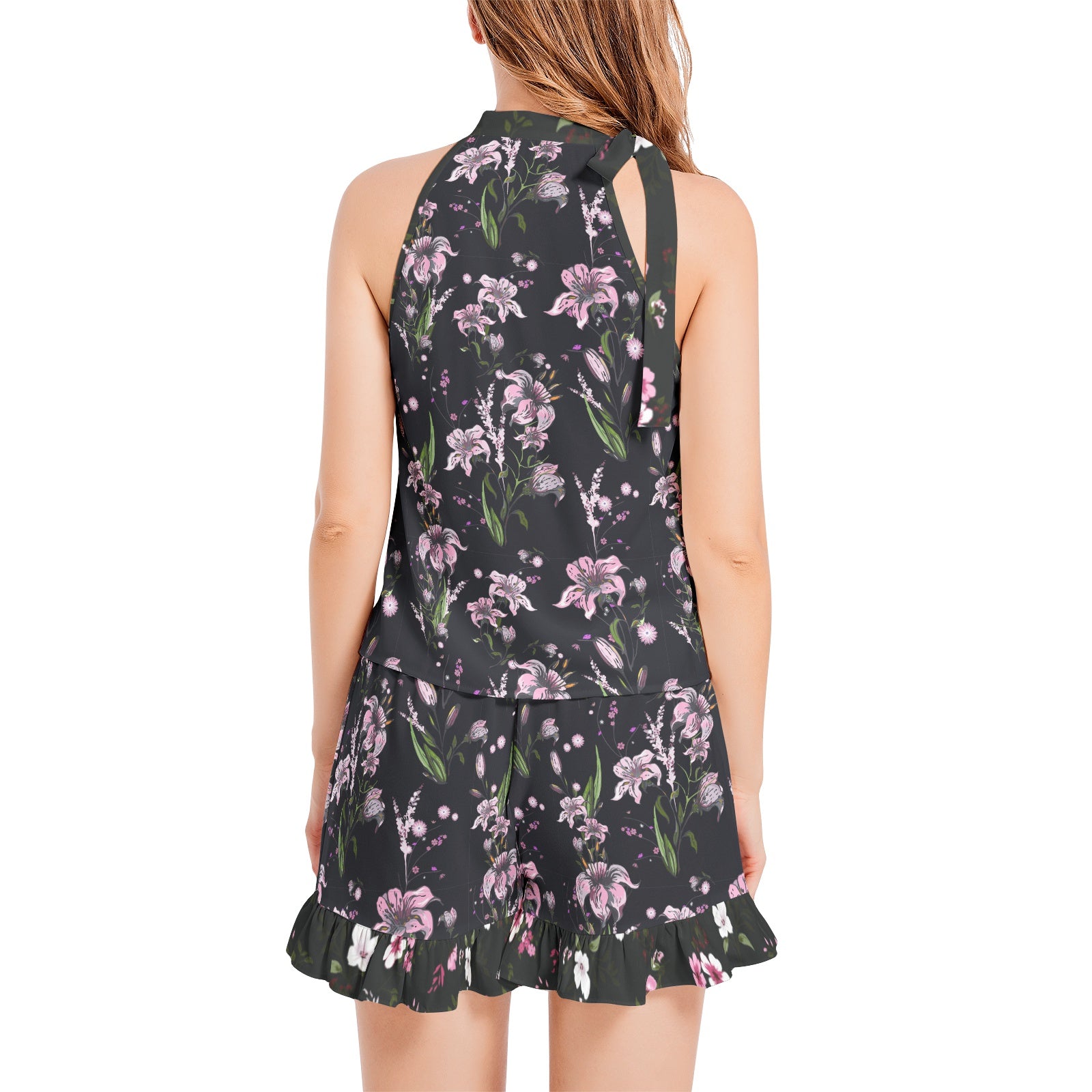 Tie Neck Halter Top and Ruffle Hem Short Set HANNA