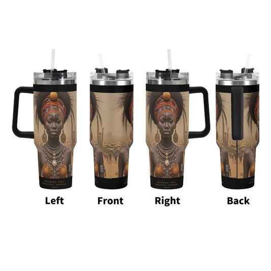 UBUNTU 40oz Stainless Steel Tumbler Gift With Black Handle and Straw