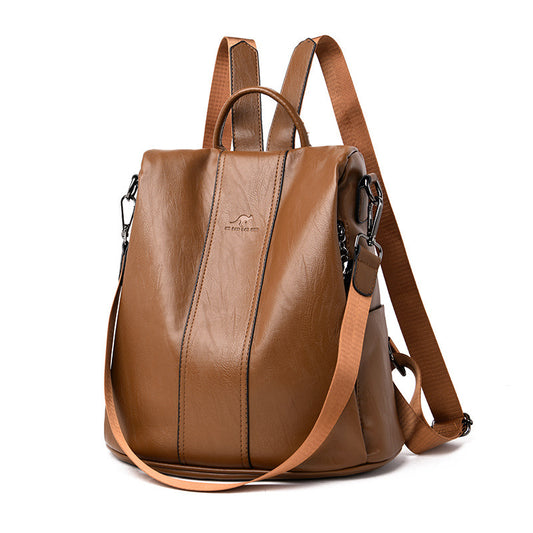 POP5 (New retro backpack college wind casual bag large capacity soft leather backpack)