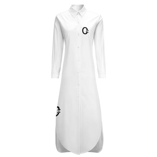 WHITE-QUEEN (Button Neck Long Sleeve Shirt Dress)