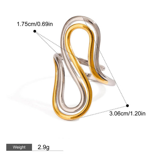 18K gold irregular lines with gold and silver color matching design unique personality ring