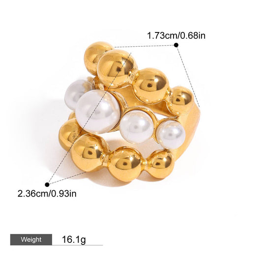 18K gold multi-layer round beads with pearl design exquisite high-end ring